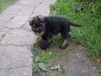 Ha már Mazsolinót emlegettem, íme törpe schnauzere, Benő még kölyökkutya korában. Ezeken a képeken talán 2-3 hónapos lehetett, ha jól emlékszem.