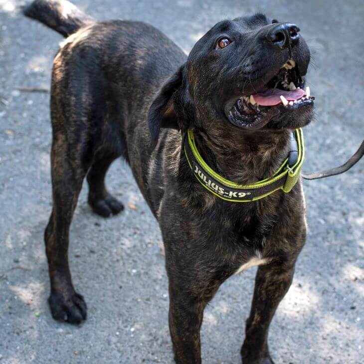 Björn. Mint az ördög, olyan eleven. Gyönyörű kutya, ő is Elif-korú, olyan tíz hónap körüli. Hatalmas tappancsaí vannak. Brenda az anyukája, ő is a menhelyen lakik. Björni is azok közé tartozik, akik egyedül (mármint kutyatárs nélkül) nem szívesen távolodnak a menhelytől, azért van épp DT ölében. Energiában és erőben úgy két-három Elif (pedig ő sem kutya, illetve hát az). Jó kutya lesz, de sok-sok időt kéne rászánni. Imádja az embereket.